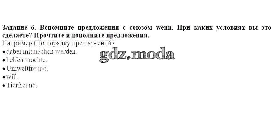 ГДЗ решение к заданию № 6 Немецкий язык 7 класс Бим И.Л. Просвещение 2019 ФГОС бесплатно на гдз.мода!