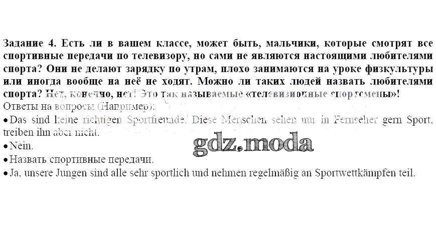 ГДЗ решение к заданию № 4 Немецкий язык 7 класс Бим И.Л. Просвещение 2019 ФГОС бесплатно на гдз.мода!