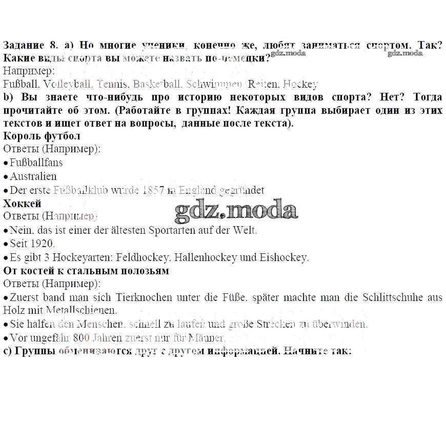 ГДЗ решение к заданию № 8 Немецкий язык 7 класс Бим И.Л. Просвещение 2019 ФГОС бесплатно на гдз.мода!