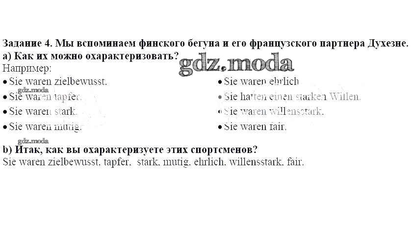 ГДЗ решение к заданию № 4 Немецкий язык 7 класс Бим И.Л. Просвещение 2019 ФГОС бесплатно на гдз.мода!