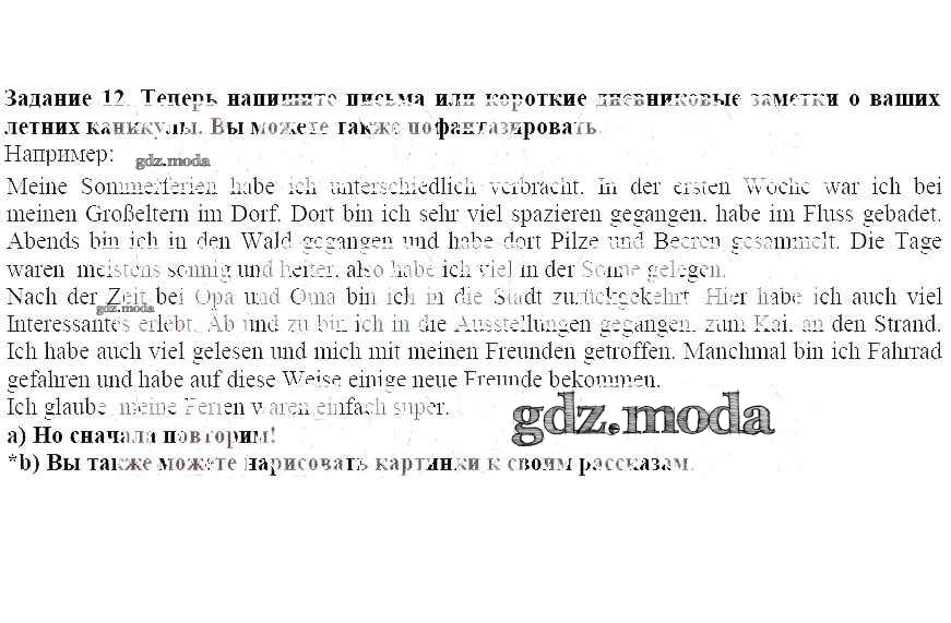 ГДЗ решение к заданию № 12 Немецкий язык 7 класс Бим И.Л. Просвещение 2019 ФГОС бесплатно на гдз.мода!