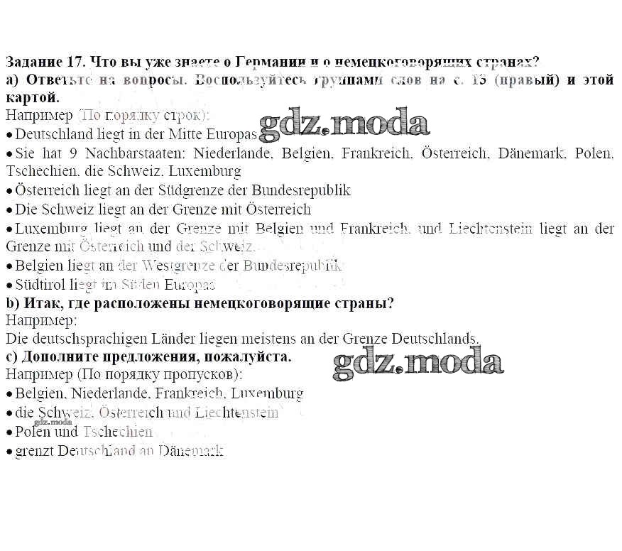 ГДЗ решение к заданию № 17 Немецкий язык 7 класс Бим И.Л. Просвещение 2019 ФГОС бесплатно на гдз.мода!