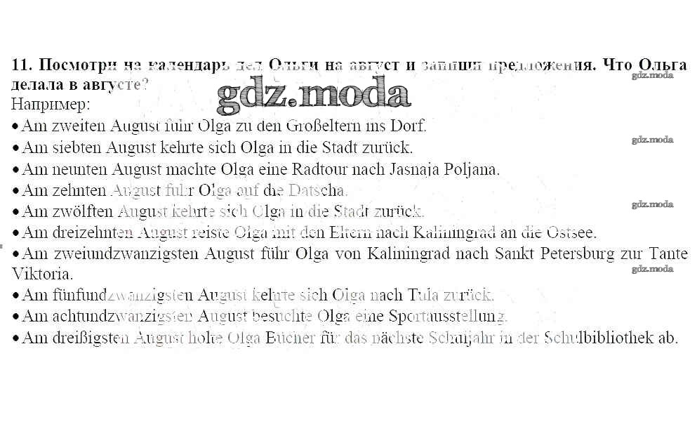 ГДЗ решение к заданию № 11 Немецкий язык 7 класс рабочая тетрадь Wunderkinder Радченко О.А. Просвещение 2012 ФГОС бесплатно на гдз.мода!