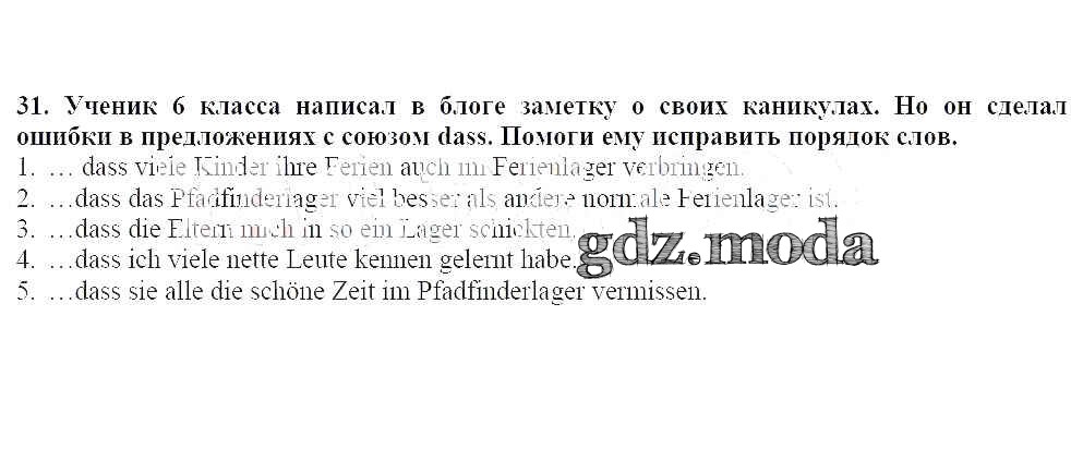 ГДЗ решение к заданию № 31 Немецкий язык 7 класс рабочая тетрадь Wunderkinder Радченко О.А. Просвещение 2012 ФГОС бесплатно на гдз.мода!