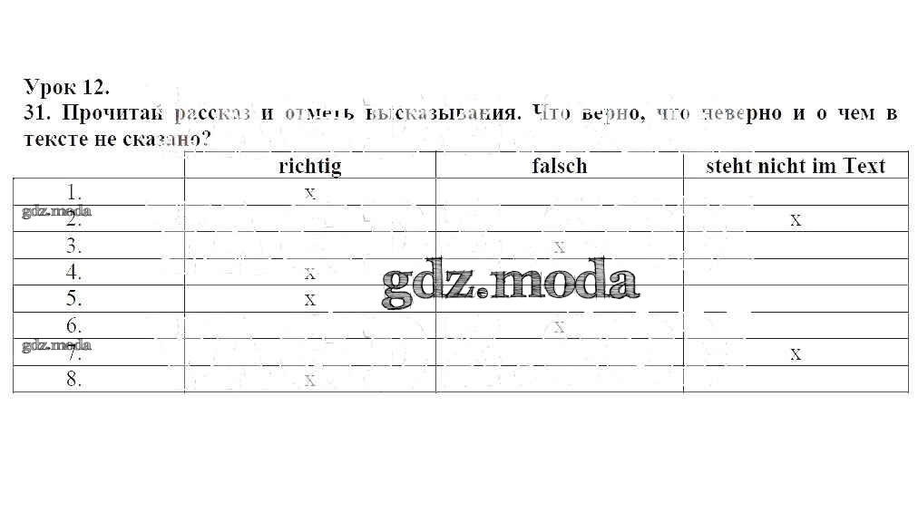 ГДЗ решение к заданию № 31 Немецкий язык 7 класс рабочая тетрадь Wunderkinder Радченко О.А. Просвещение 2012 ФГОС бесплатно на гдз.мода!
