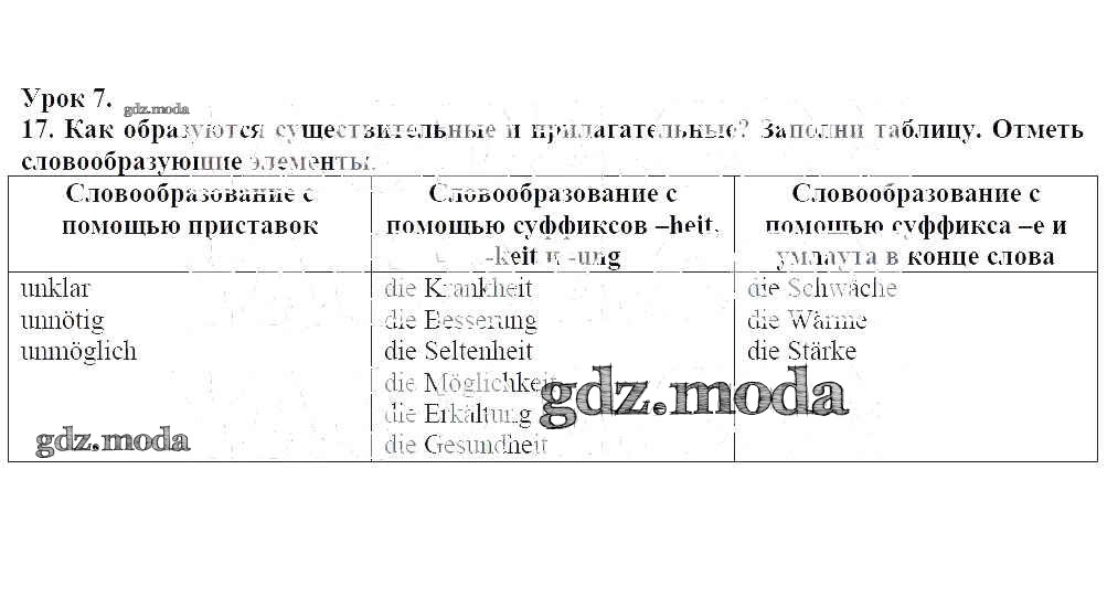 ГДЗ решение к заданию № 17 Немецкий язык 7 класс рабочая тетрадь Wunderkinder Радченко О.А. Просвещение 2012 ФГОС бесплатно на гдз.мода!