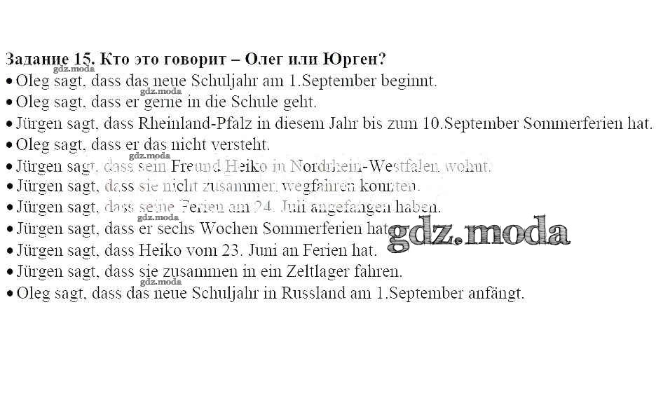 ГДЗ решение к заданию № 15 Немецкий язык 7 класс Радченко О.А. Дрофа 2020 ФГОС бесплатно на гдз.мода!