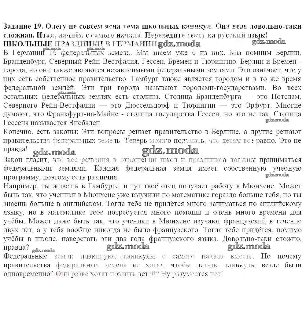 ГДЗ решение к заданию № 19 Немецкий язык 7 класс Радченко О.А. Дрофа 2020 ФГОС бесплатно на гдз.мода!