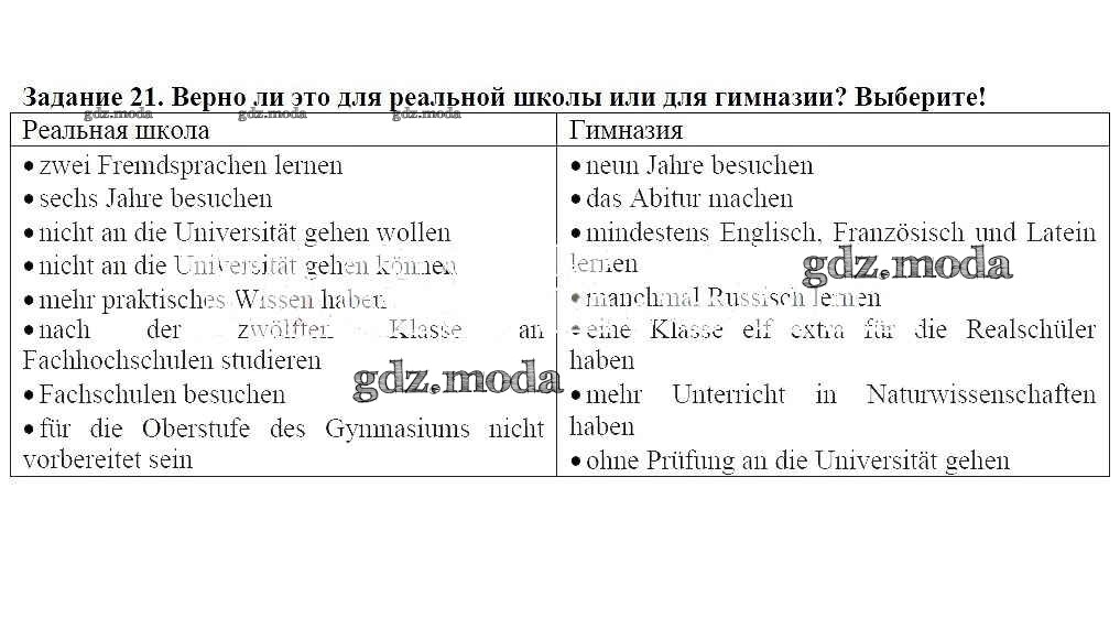 ГДЗ решение к заданию № 21 Немецкий язык 7 класс Радченко О.А. Дрофа 2020 ФГОС бесплатно на гдз.мода!