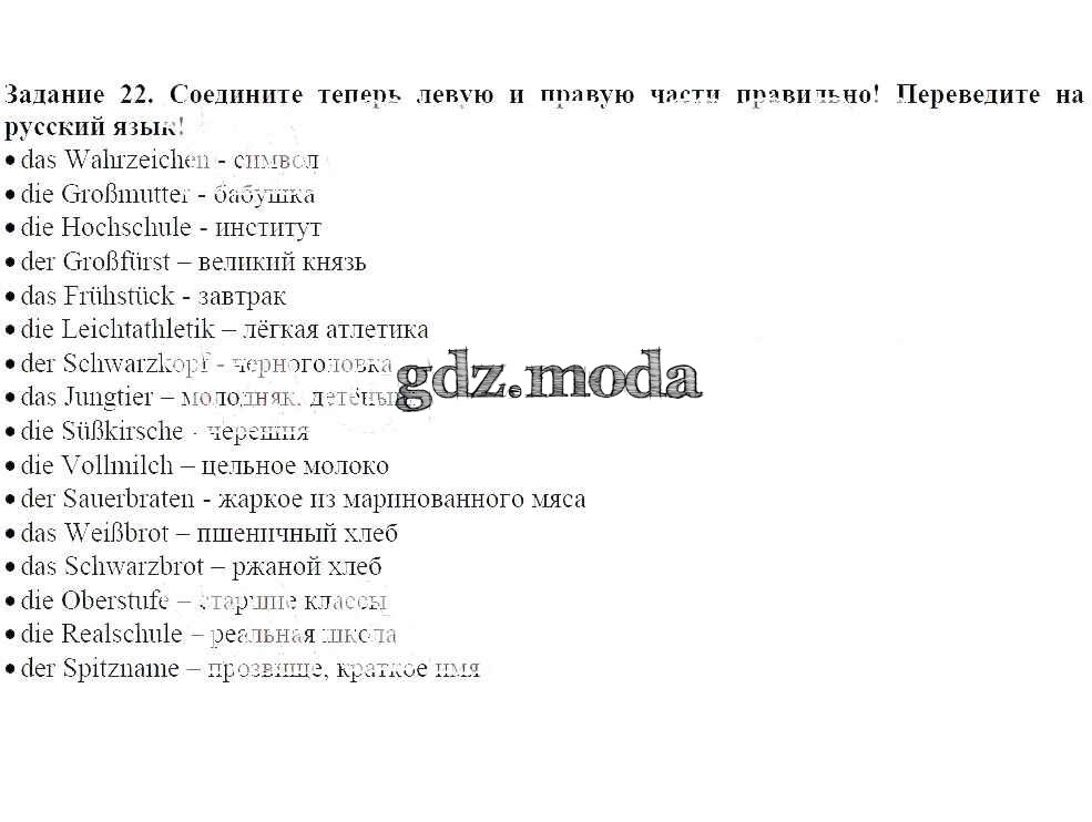 ГДЗ решение к заданию № 22 Немецкий язык 7 класс Радченко О.А. Дрофа 2020 ФГОС бесплатно на гдз.мода!