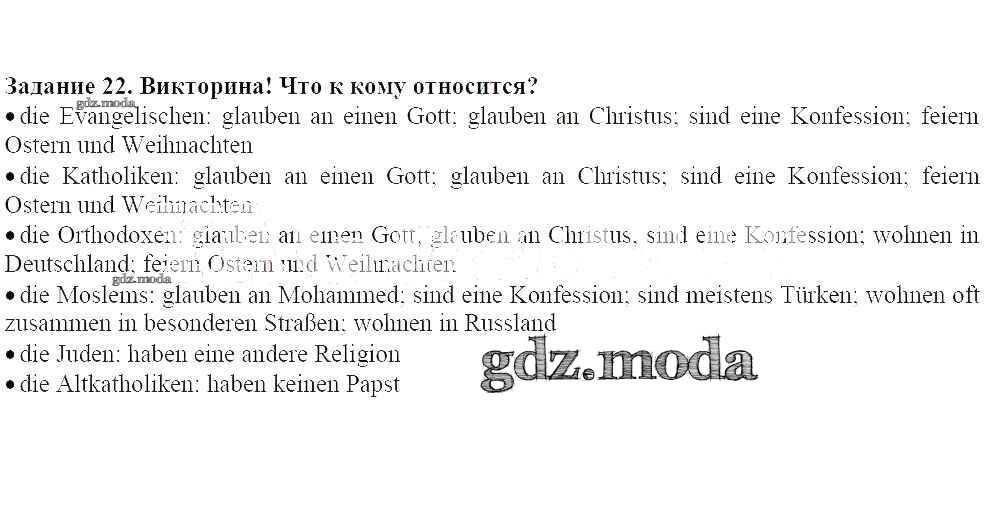 ГДЗ решение к заданию № 22 Немецкий язык 7 класс Радченко О.А. Дрофа 2020 ФГОС бесплатно на гдз.мода!