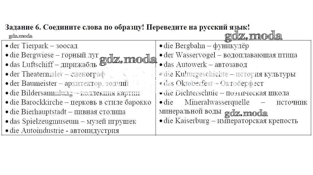 ГДЗ решение к заданию № 6 Немецкий язык 7 класс Радченко О.А. Дрофа 2020 ФГОС бесплатно на гдз.мода!