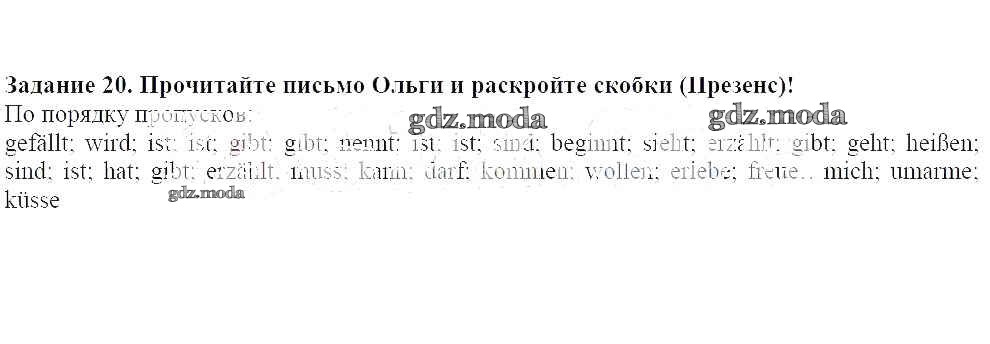 ГДЗ решение к заданию № 20 Немецкий язык 7 класс Радченко О.А. Дрофа 2020 ФГОС бесплатно на гдз.мода!