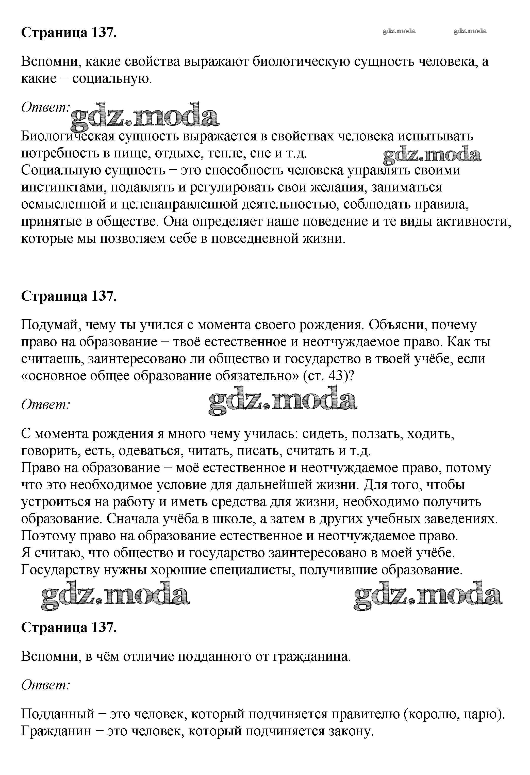 ОТВЕТ на задание № стр.137 Учебник по Обществознанию 7 класс Боголюбов Академический школьный учебник