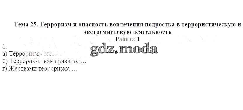 ОТВЕТ на задание № 1 Рабочая тетрадь по ОБЖ 7 класс Демидов