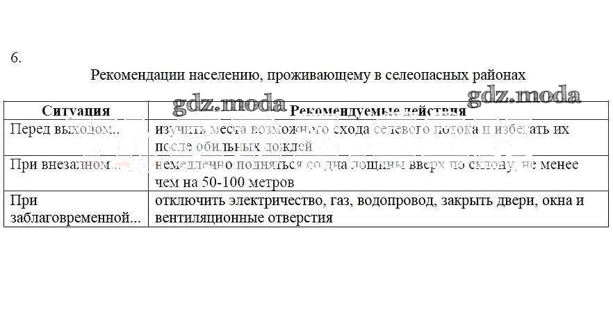 ГДЗ решение к заданию № 6 ОБЖ 7 класс рабочая тетрадь Егорова Л.В. Лицей 2012 бесплатно на гдз.мода!