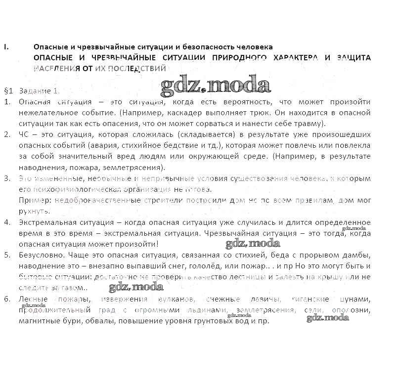 ОТВЕТ на задание № 1 Рабочая тетрадь по ОБЖ 7 класс Подолян
