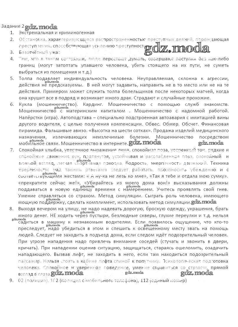 ОТВЕТ на задание № 2 Рабочая тетрадь по ОБЖ 7 класс Подолян