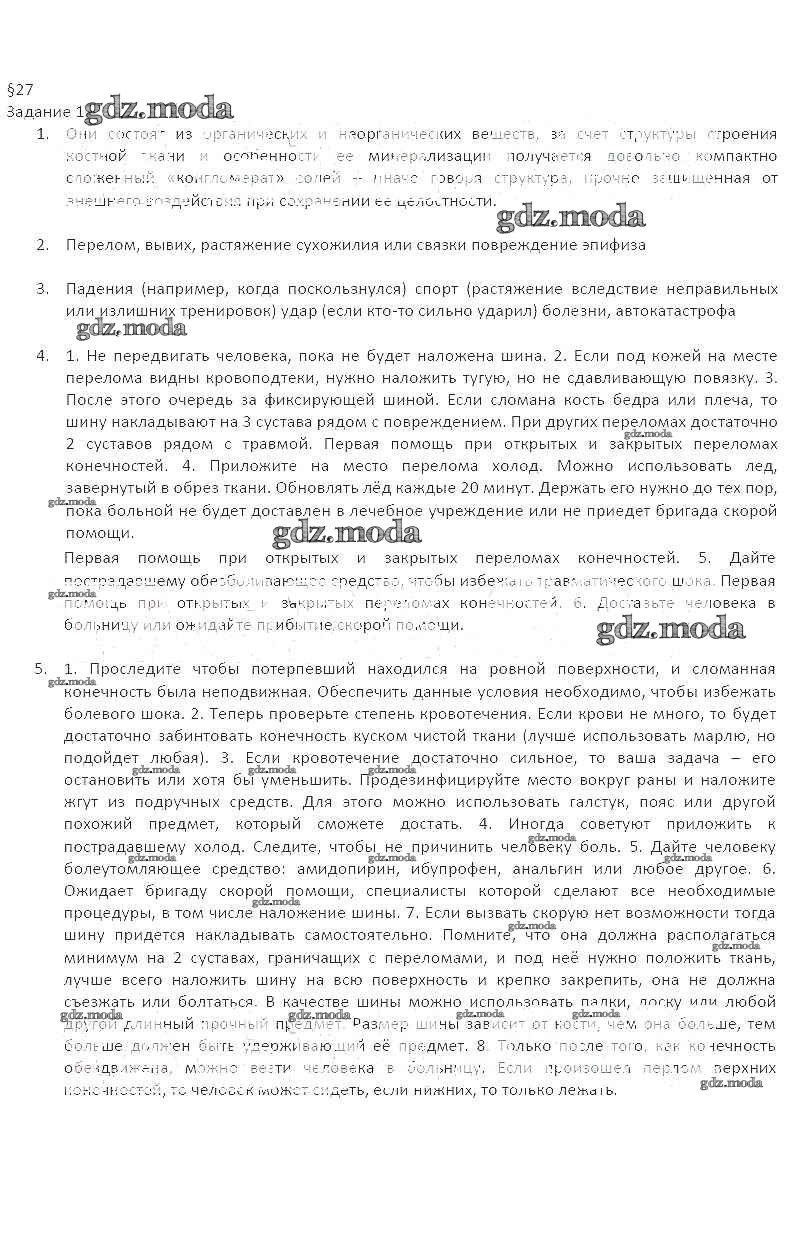 ОТВЕТ на задание № 1 Рабочая тетрадь по ОБЖ 7 класс Подолян