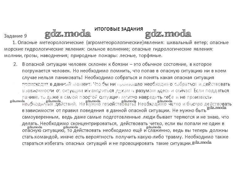 ОТВЕТ на задание № 9 Рабочая тетрадь по ОБЖ 7 класс Подолян