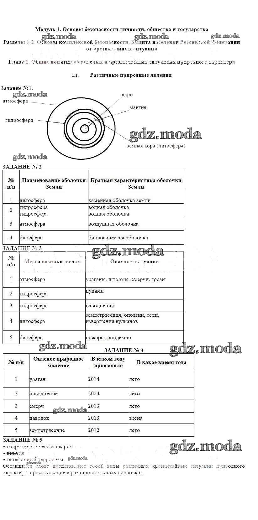ОТВЕТ на задание № 1.1 Рабочая тетрадь по ОБЖ 7 класс Смирнов