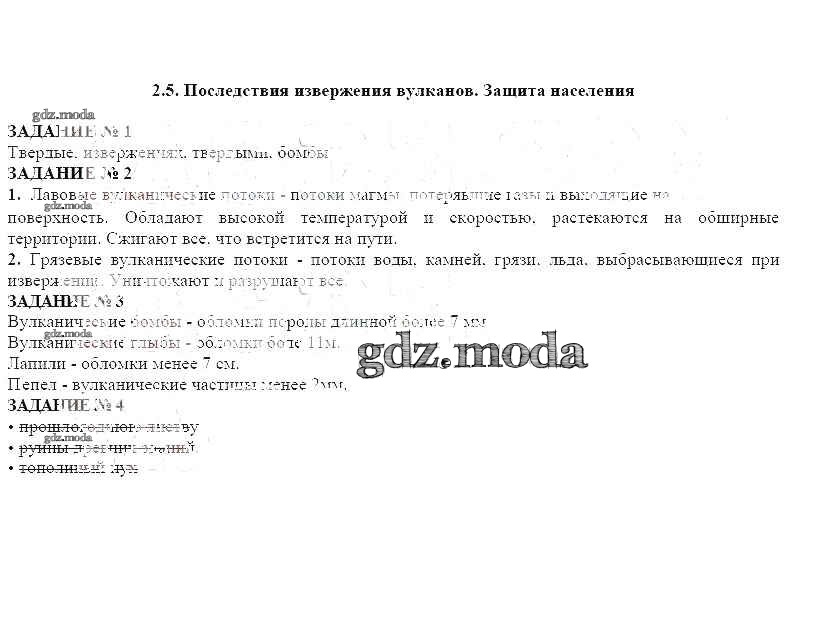 ОТВЕТ на задание № 2.5 Рабочая тетрадь по ОБЖ 7 класс Смирнов