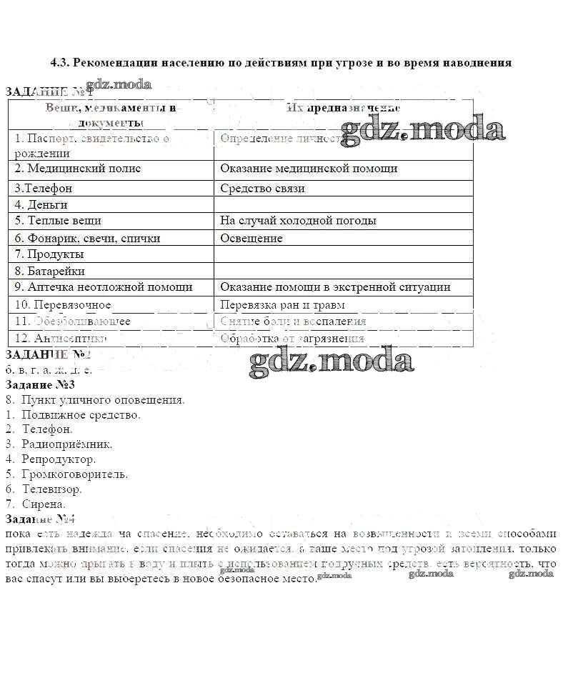 ОТВЕТ на задание № 4.3 Рабочая тетрадь по ОБЖ 7 класс Смирнов