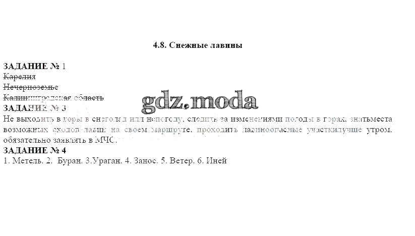 ОТВЕТ на задание № 4.8 Рабочая тетрадь по ОБЖ 7 класс Смирнов