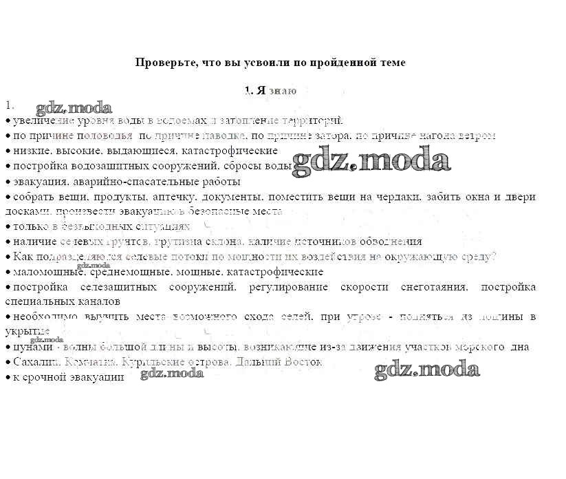 ОТВЕТ на задание № Проверьте свои знания Рабочая тетрадь по ОБЖ 7 класс Смирнов