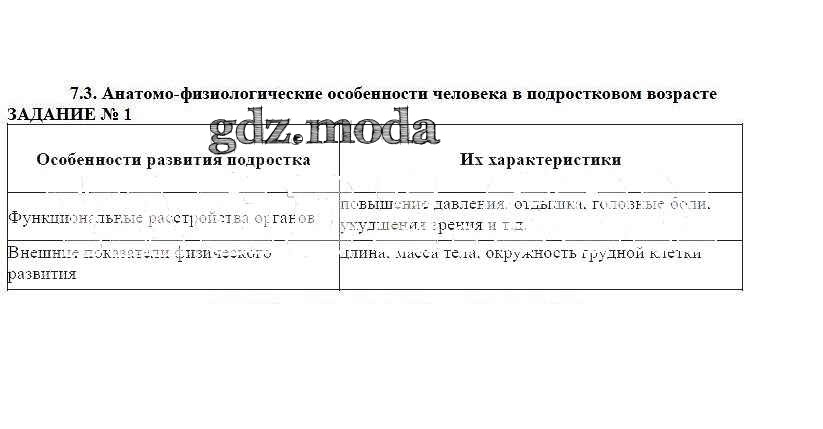 ГДЗ решение к заданию № 7.3 ОБЖ 7 класс рабочая тетрадь Смирнов А.Т. Просвещение 2018 бесплатно на гдз.мода!