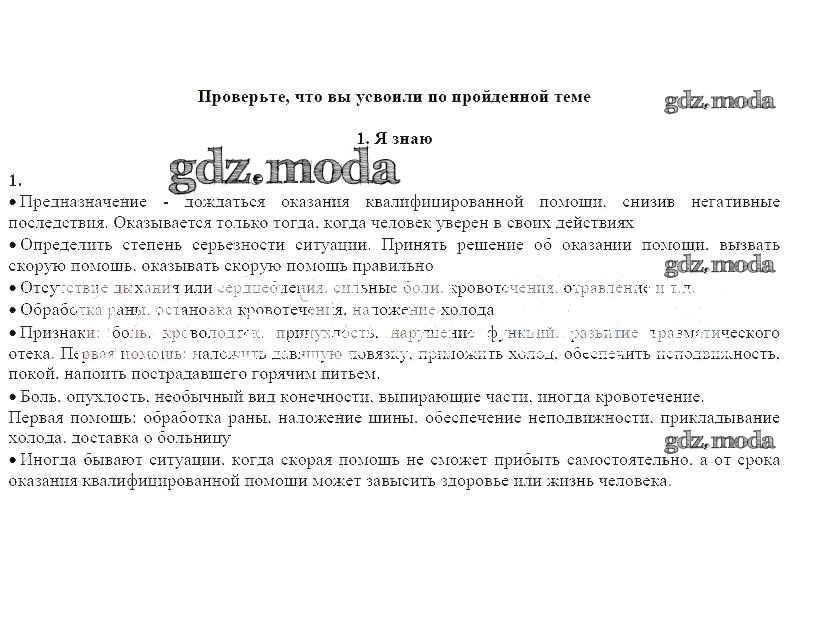 ГДЗ решение к заданию № Проверьте свои знания ОБЖ 7 класс рабочая тетрадь Смирнов А.Т. Просвещение 2018 бесплатно на гдз.мода!