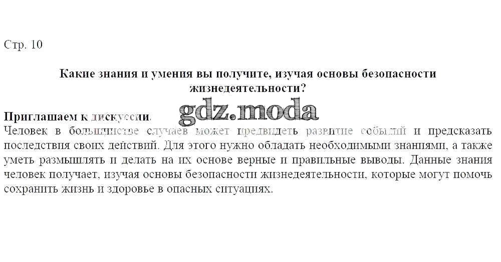 ГДЗ решение к заданию № 10 ОБЖ 7-9 классы Виноградова Н. Ф. Вентана-граф 2019 ФГОС бесплатно на гдз.мода!