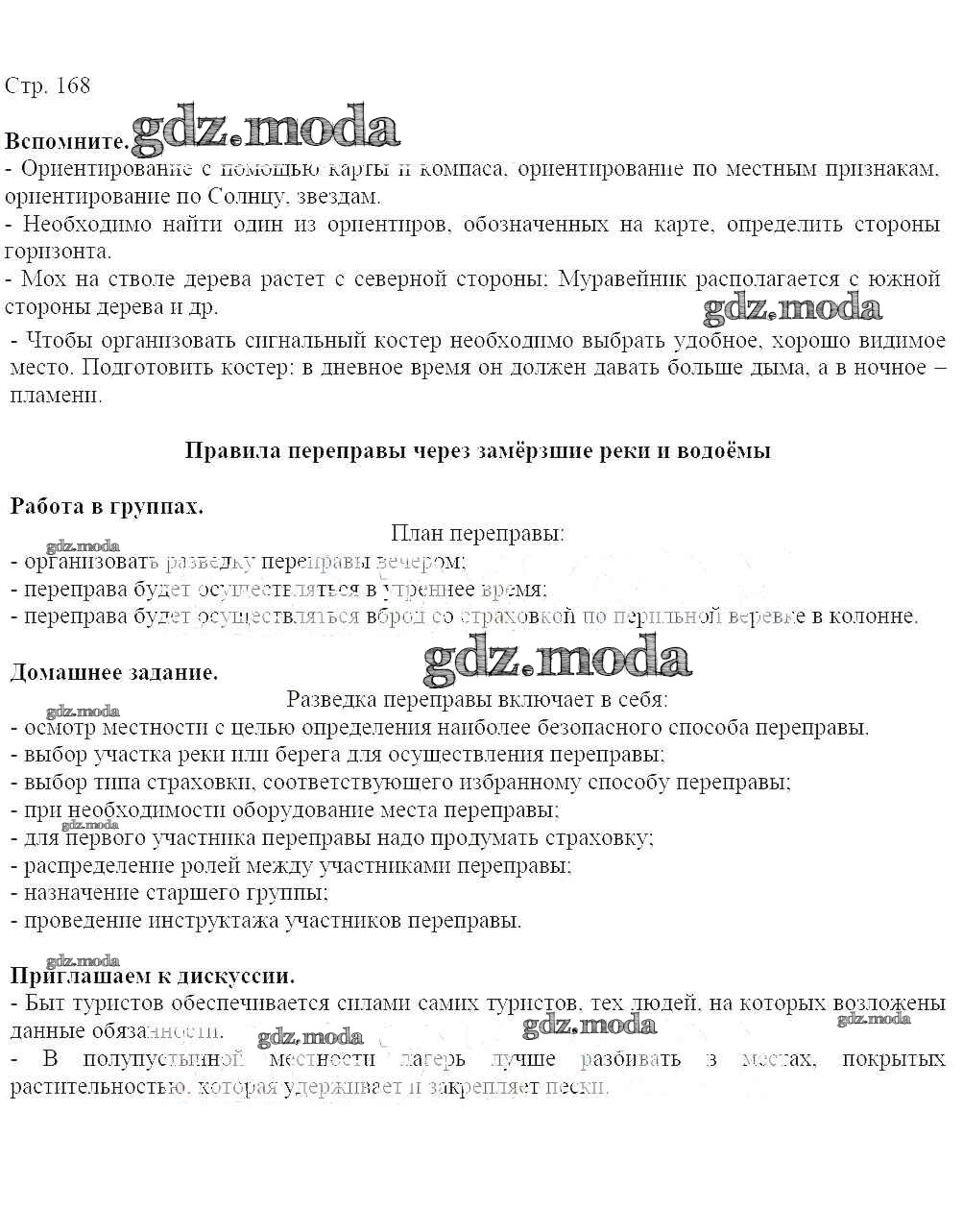 ГДЗ решение к заданию № 168 ОБЖ 7-9 классы Виноградова Н. Ф. Вентана-граф 2019 ФГОС бесплатно на гдз.мода!