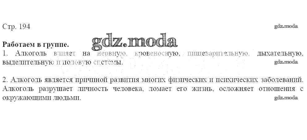 ГДЗ решение к заданию № 194 ОБЖ 7-9 классы Виноградова Н. Ф. Вентана-граф 2019 ФГОС бесплатно на гдз.мода!
