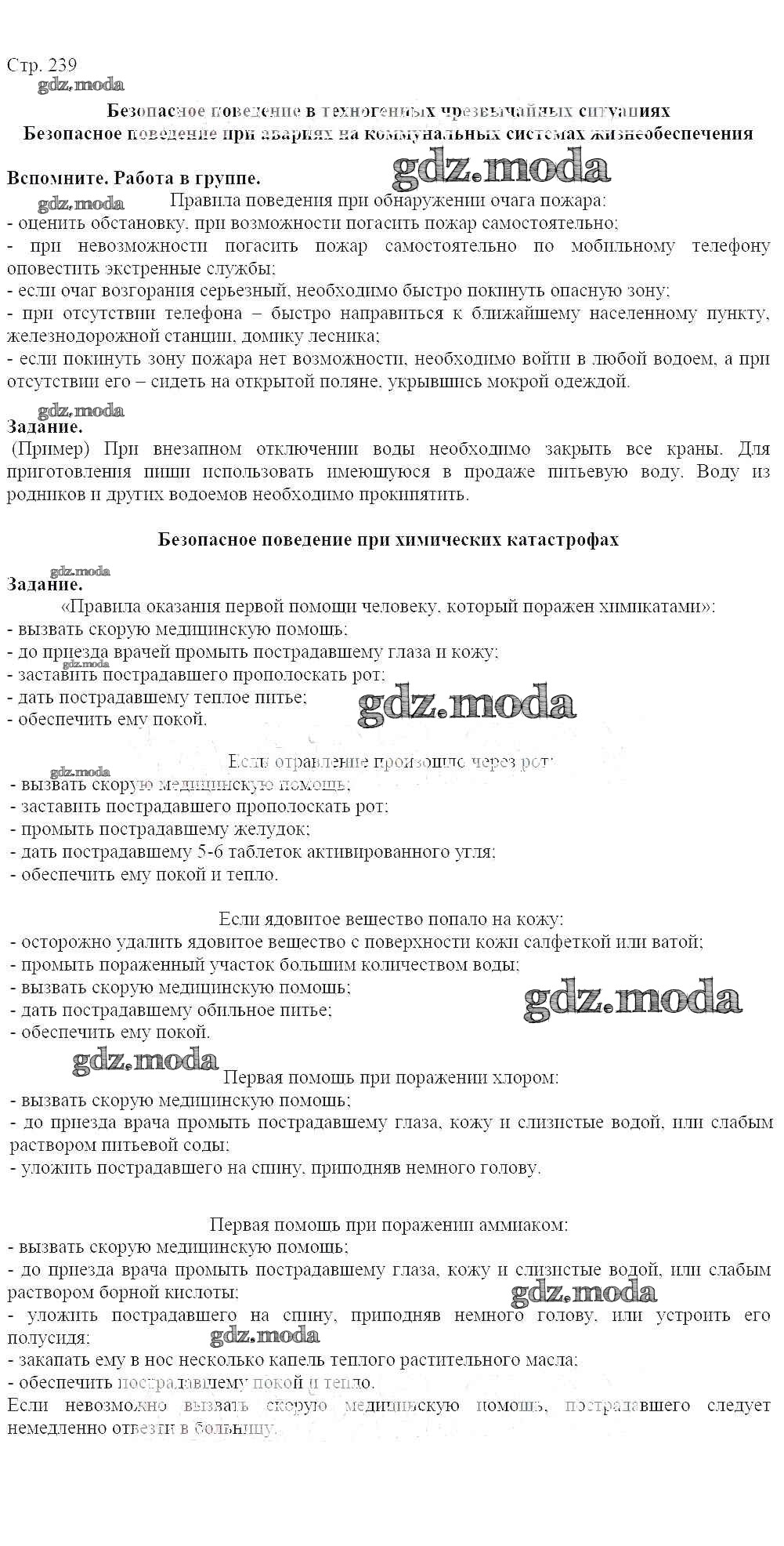 ГДЗ решение к заданию № 239 ОБЖ 7-9 классы Виноградова Н. Ф. Вентана-граф 2019 ФГОС бесплатно на гдз.мода!