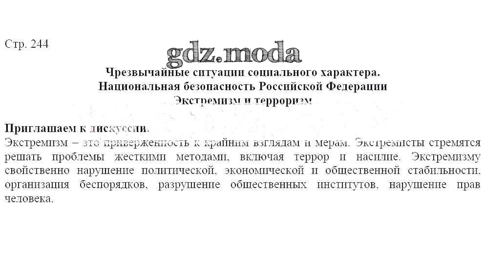 ГДЗ решение к заданию № 244 ОБЖ 7-9 классы Виноградова Н. Ф. Вентана-граф 2019 ФГОС бесплатно на гдз.мода!