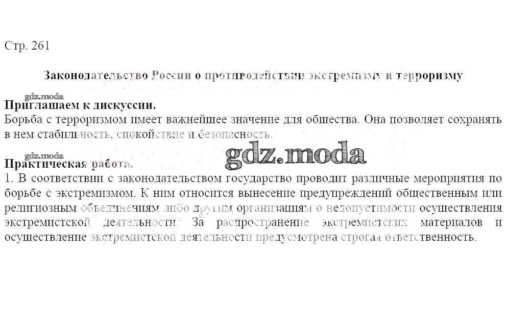 ГДЗ решение к заданию № 261 ОБЖ 7-9 классы Виноградова Н. Ф. Вентана-граф 2019 ФГОС бесплатно на гдз.мода!