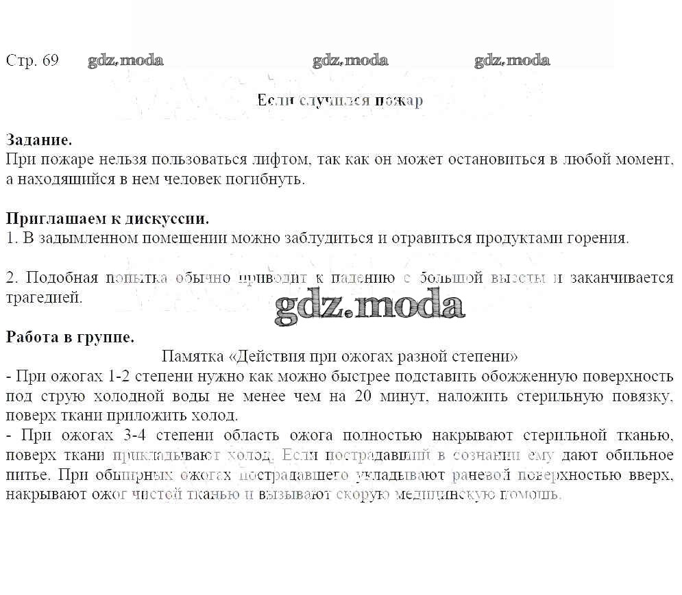 ГДЗ решение к заданию № 69 ОБЖ 7-9 классы Виноградова Н. Ф. Вентана-граф 2019 ФГОС бесплатно на гдз.мода!
