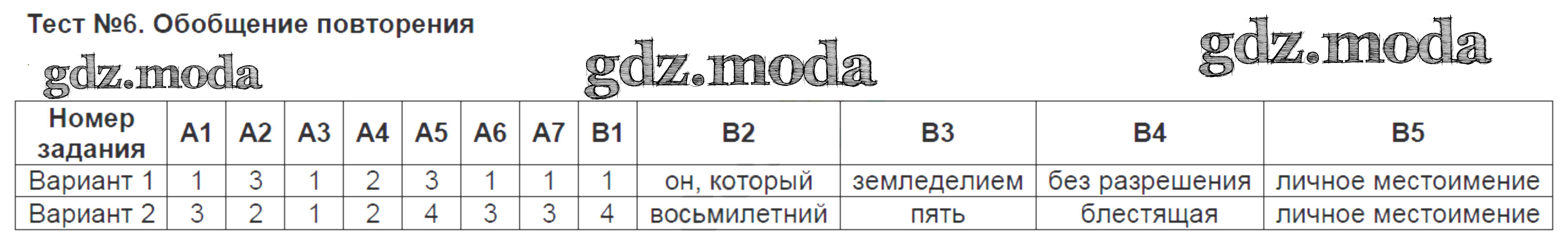 ОТВЕТ на задание № 6 Контрольно-измерительные материалы (КИМ) по Русскому языку 7 класс Потапова