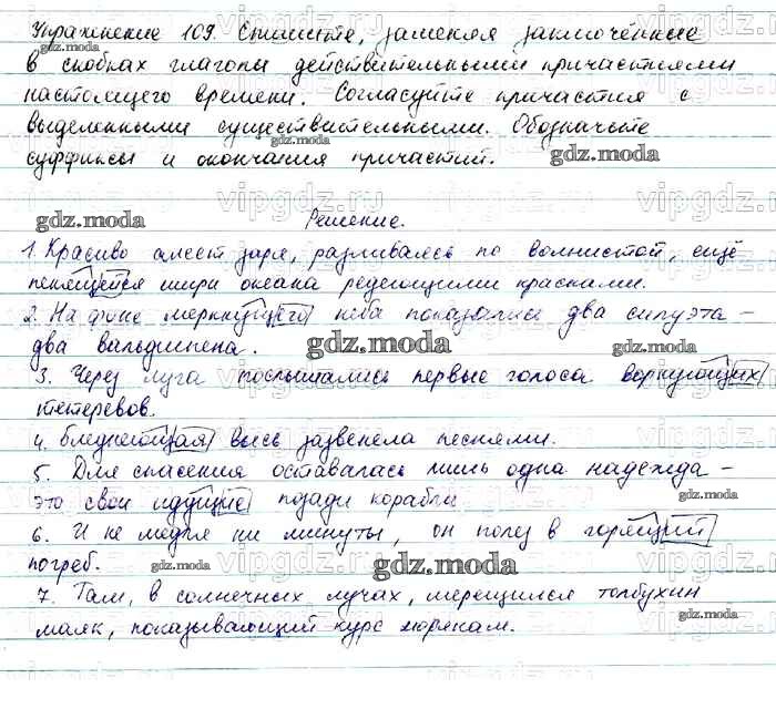 ОТВЕТ на задание № 109 Учебник по Русскому языку 7 класс Баранов УМК