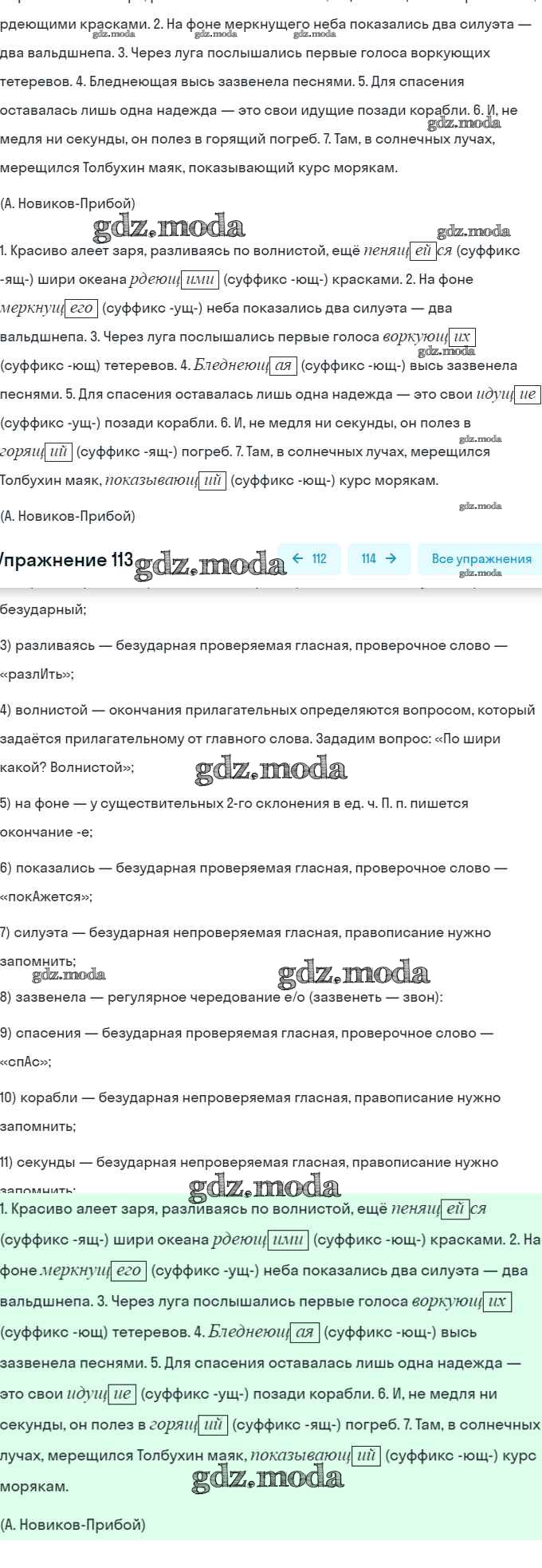 ОТВЕТ на задание № 113 Учебник по Русскому языку 7 класс Баранов