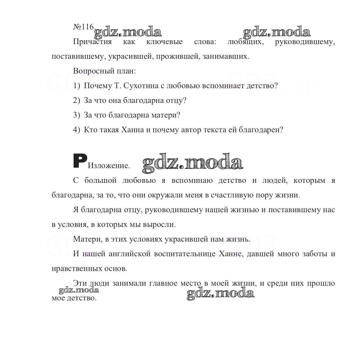 ОТВЕТ на задание № 116 Учебник по Русскому языку 7 класс Баранов УМК