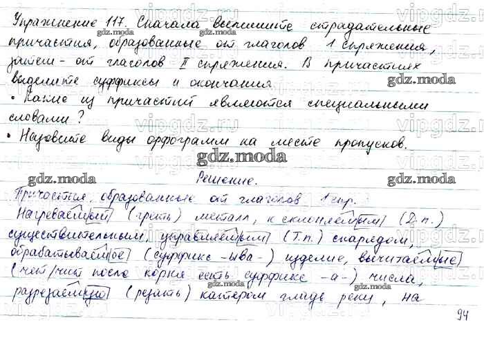 ОТВЕТ на задание № 117 Учебник по Русскому языку 7 класс Баранов УМК