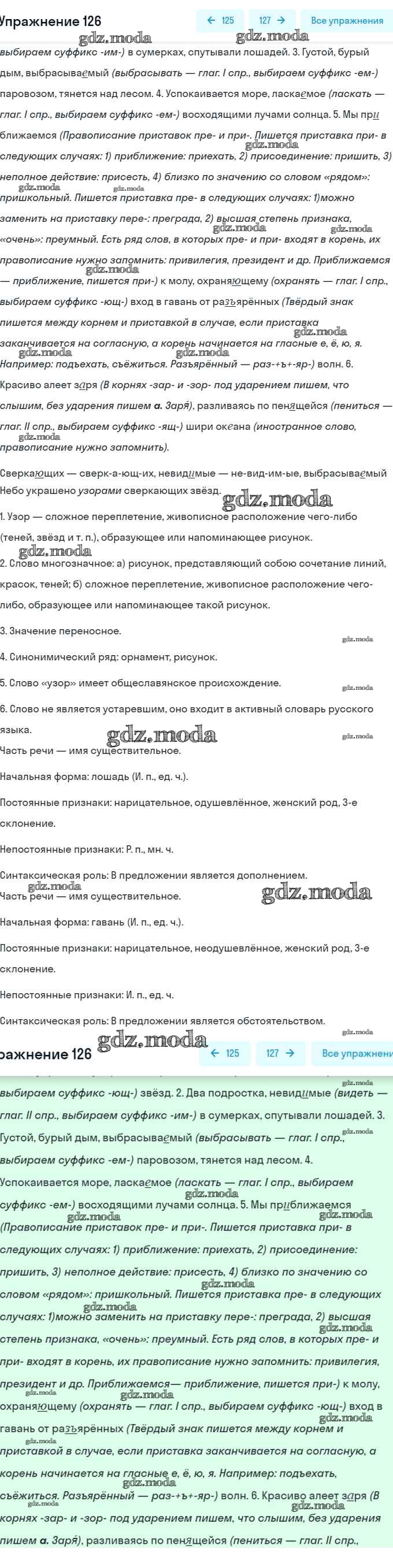 ОТВЕТ на задание № 126 Учебник по Русскому языку 7 класс Баранов