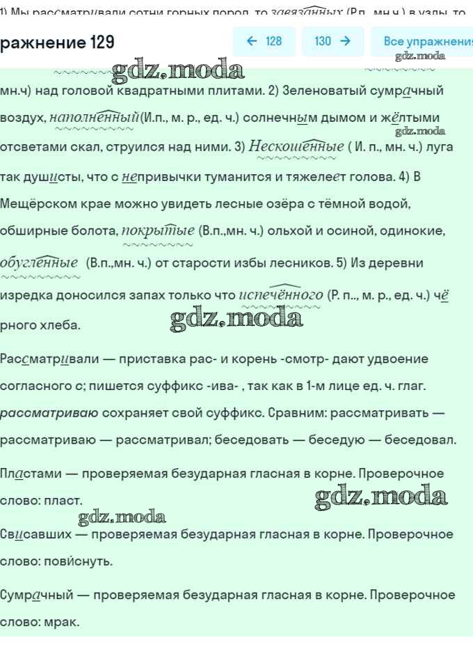 ОТВЕТ на задание № 129 Учебник по Русскому языку 7 класс Баранов