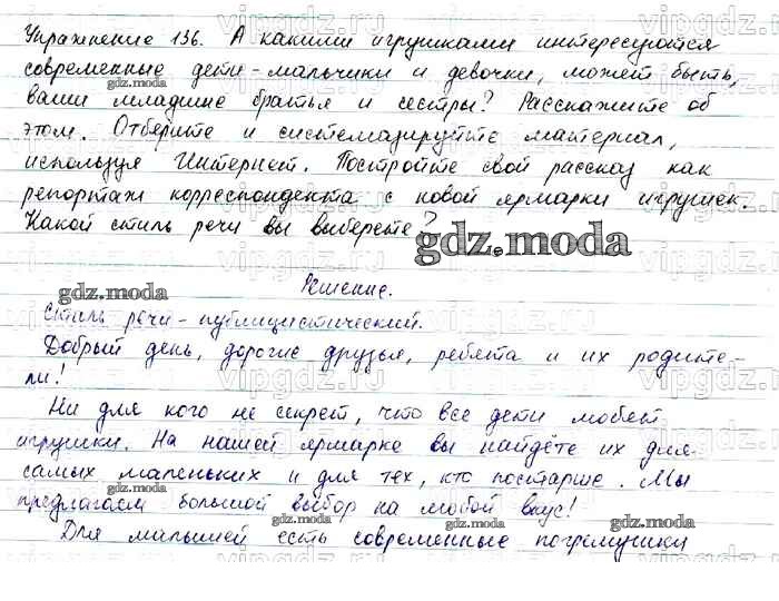 ОТВЕТ на задание № 136 Учебник по Русскому языку 7 класс Баранов УМК