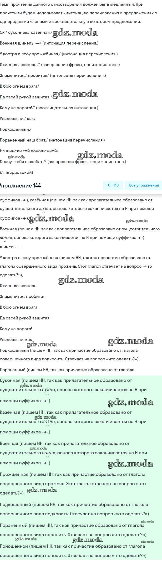 ОТВЕТ на задание № 144 Учебник по Русскому языку 7 класс Баранов