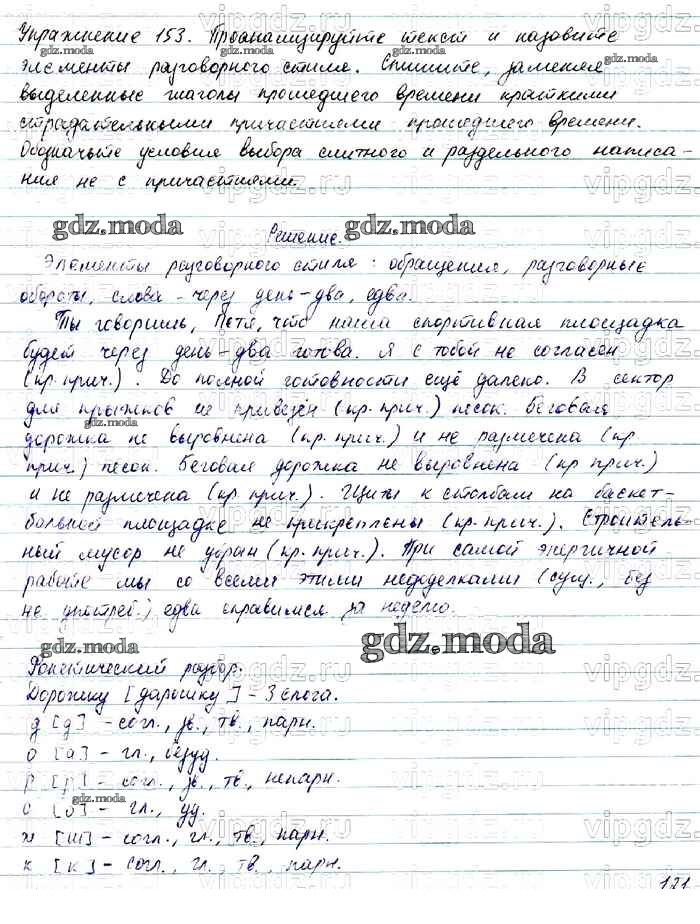 ОТВЕТ на задание № 153 Учебник по Русскому языку 7 класс Баранов УМК