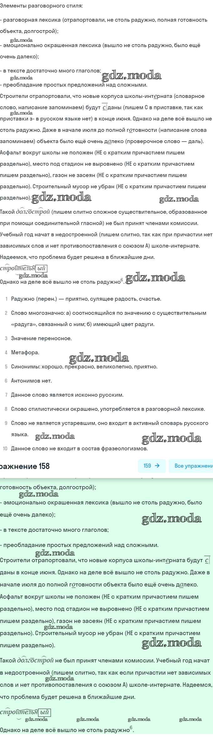 ОТВЕТ на задание № 158 Учебник по Русскому языку 7 класс Баранов