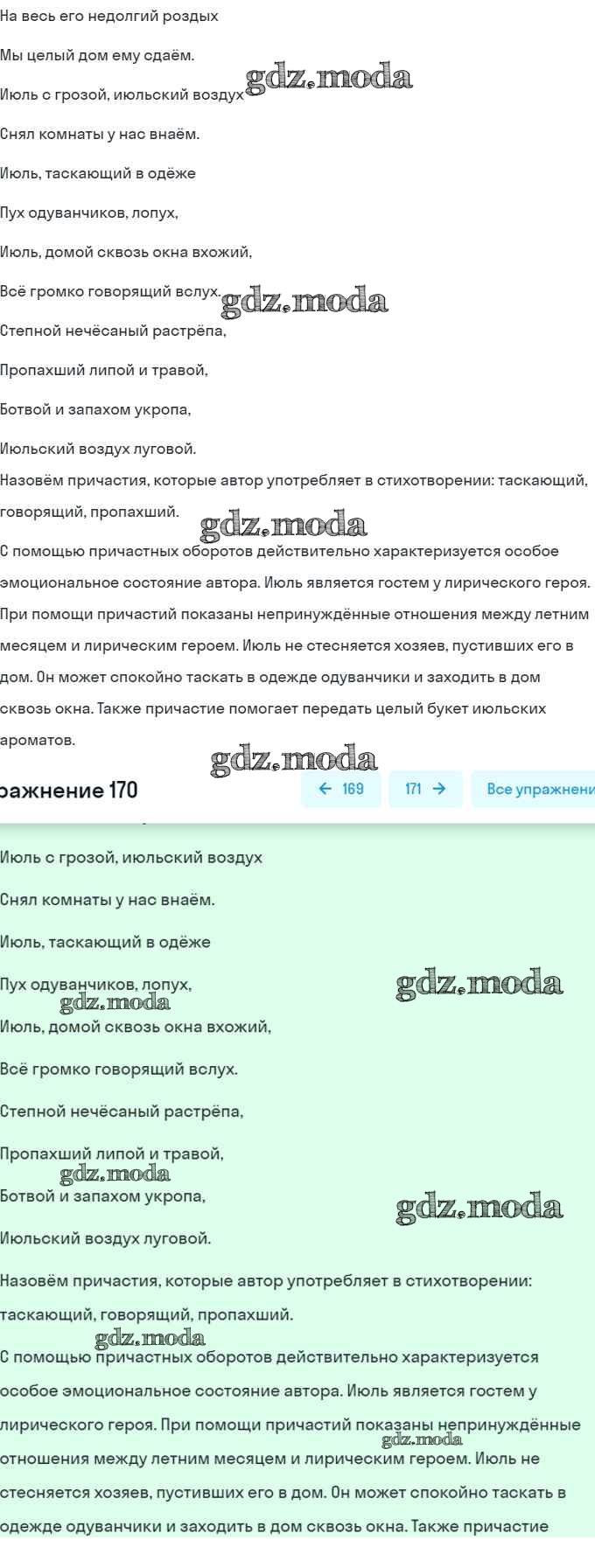ОТВЕТ на задание № 170 Учебник по Русскому языку 7 класс Баранов